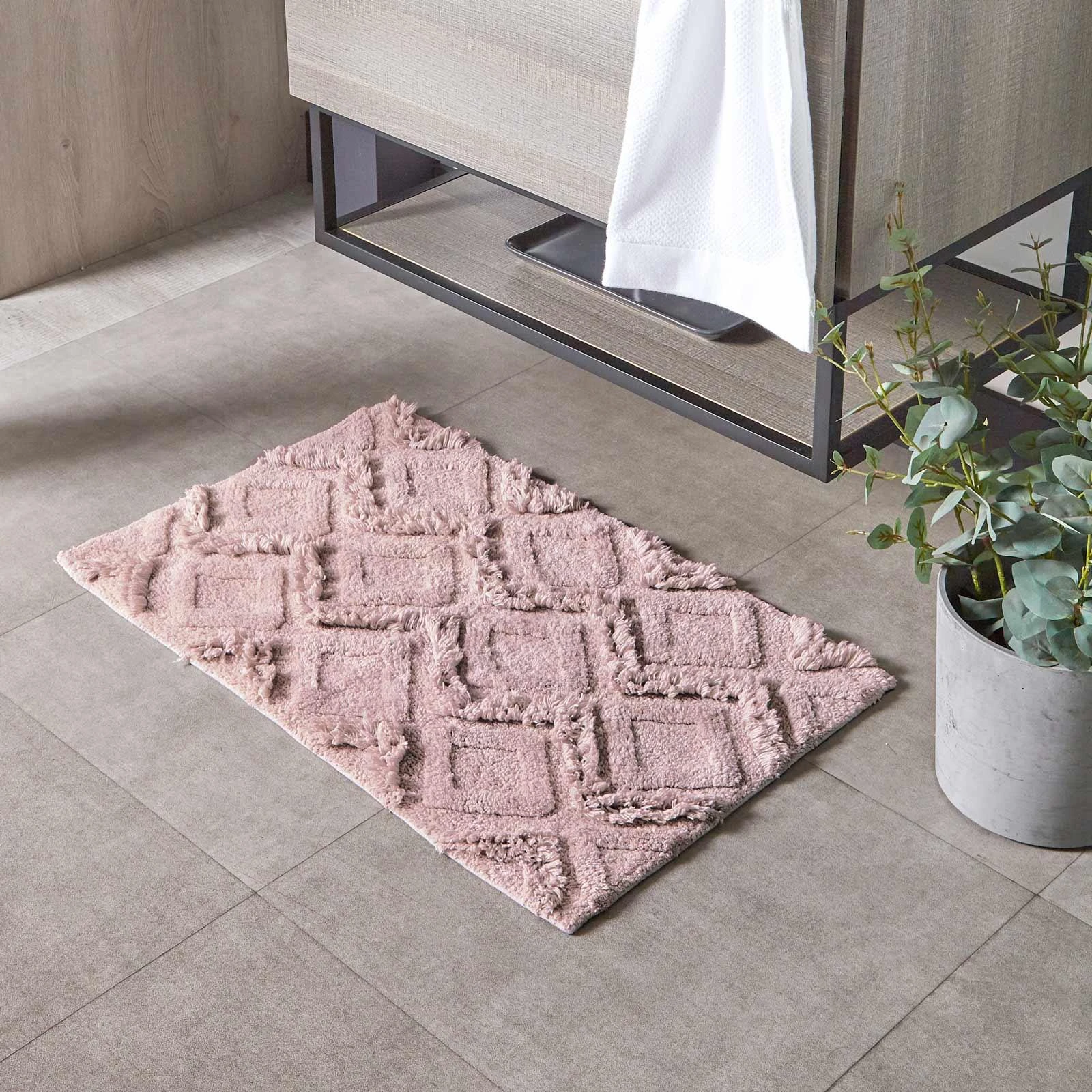 Celebrating an iconic global design, this Diamond cotton tufted bath mat has a wonderfully soft underfoot and is also quick drying with an anti-slip quality keeping it in place on your bathroom floor.